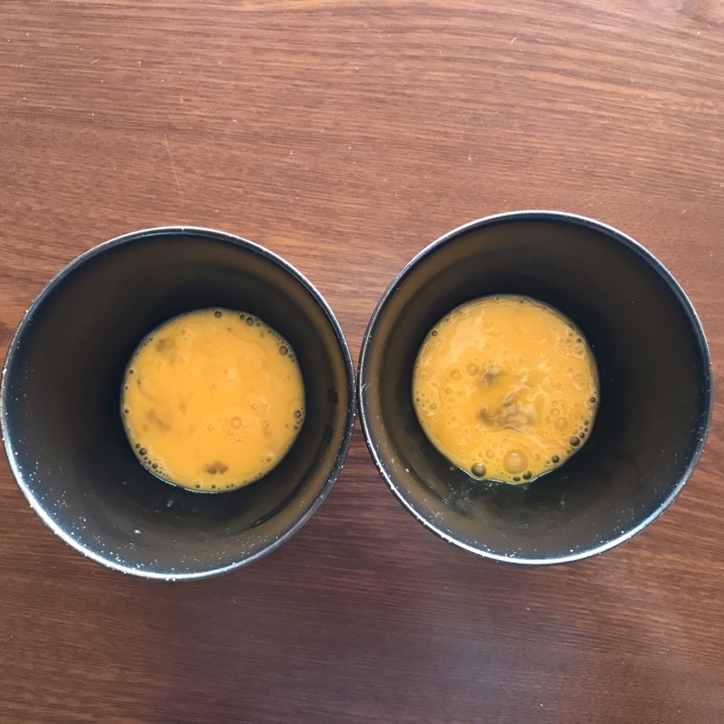 「これね〜テレビで観てたら、うまい食い方があるってんだよね。1ヶ月!1ヶ月置くとね、白身が水っぽくなって、泡立ちが良くなって美味しくなるんだって言っててね〜。これ、1ヶ月置いてみたやつ。それでこっちが今日産みたての。食べ比べてみて!じゃあ!」